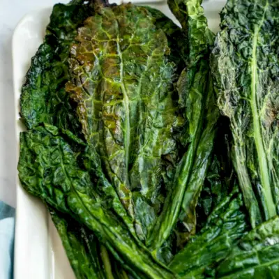 Deixe-nos apresentar-lhe a couve toscana grelhada! Assim como alface grelhada , jogar folhas verdes na grelha é uma coisa. Esta couve grelhada sai crocante e carbonizada, com um tom esfumaçado. É perfeito para jogar em uma grelha enquanto você cozinha um prato principal ou outros vegetais. Coma-o como aperitivo ou acompanhamento de um grelhado: é quase como couve assada encontra chips de couve .