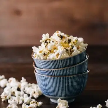 Esta pipoca de ervas é vegetariana e sem glúten. Para veganos, à base de plantas e sem laticínios, use óleo de coco em vez de manteiga.