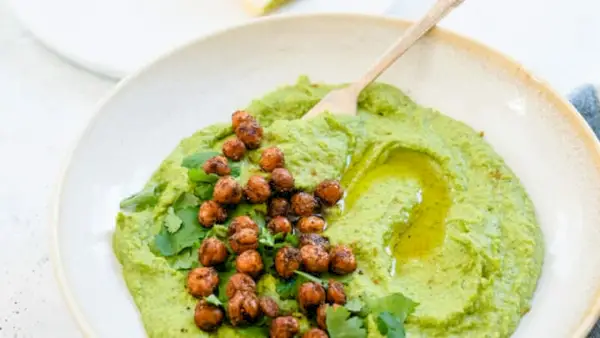 Este hummus verde é um lanche saudável, brilhante e saboroso, com espinafre, coentro e limão. Lanche ficou ainda mais divertido!