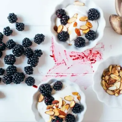 - Bagas e chantilly de iogurte usa iogurte grego para fazer um creme picante e levemente doce que melhora a saúde.