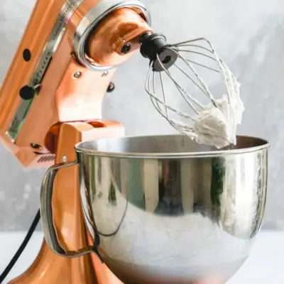 Sim, você pode usar um batedeira ou KitchenAid para esta receita de chantilly, usando o batedor. Siga as instruções abaixo e deixe a batedeira atingir a consistência desejada. Muitas vezes gostamos de bater à mão porque temos a satisfação de fazê-lo com as nossas próprias mãos. Mas se preferir, use sua batedeira KitchenAid!