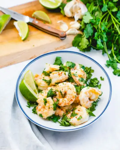 Esta é a nossa nova maneira favorita de prepará-lo: Camarão Coentro e Limão! Esta receita leva apenas 10 minutos para fazer e fica lindamente picante e fresca! Combina perfeitamente com sabores mexicanos: experimente com feijão frito, arroz, em tacos ou com batatas fritas e molho.