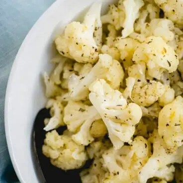 Remova cuidadosamente a couve-flor para uma tigela. Agora é aqui que a magia começa! Tempere com azeite, sal e pimenta, tempero italiano e raspas de limão. (PS Aqui está como raspar um limão .) Então experimente! Esperamos que você goste desta couve-flor cozida no vapor tanto quanto nós.