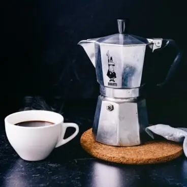 A Moka Pot é uma cafeteira de fogão usada para fazer café tipo expresso. Ele usa água fervente para forçar o vapor através dos grãos de café, de modo que o café borbulhe na cafeteira em vez de escorrer como no café preparado.