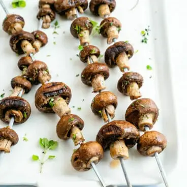 Estes são os melhores cogumelos grelhados: esfumados, macios e tão fáceis de fazer! Cozinhe-os em espetos e polvilhe com ervas frescas e limão.