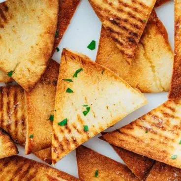 E é isso! Deixe-nos saber se você experimentar esses chips pita nos comentários abaixo. Eles são um grande sucesso por aqui (e perfeitos com nosso Hummus Dip favorito).