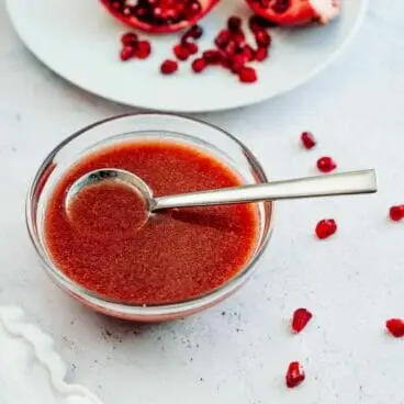 Este vinagrete de romã doce e azedo é um molho frutado que torna qualquer salada irresistível! Use-o em todas as suas receitas de saladas favoritas.