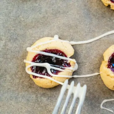 Em vez disso, regue a cobertura com um garfo oferece o melhor controle e ajuda a fazer linhas perfeitamente finas. Você também pode colocar a cobertura usando um saco de confeitar. Mas essa cobertura de açúcar de confeiteiro é do tipo indicada para regar biscoitos, muffins e bolos: e usar um garfo é a maneira mais fácil de fazer isso!