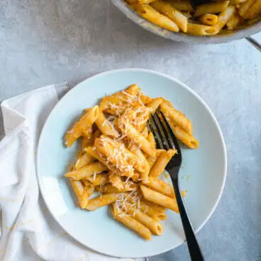 É temporada de abóboras! Alex e eu precisávamos de uma conversa rápida e receita de jantar fácil para convidados, e estávamos desejando aquela onipresente abóbora laranja. Embora a abóbora seja frequentemente servida doce, por que não salgada? O purê de abóbora é, na verdade, um molho cremoso e irresistível para macarrão de abóbora. Sua textura combina perfeitamente com o queijo parmesão e seu sabor sutil funciona tão bem com alho e pimenta em pó quanto com temperos de abóbora. Melhor ainda, esse molho para macarrão é rápido de preparar: mesmo com o penne, leva menos de 30 minutos para fazer.