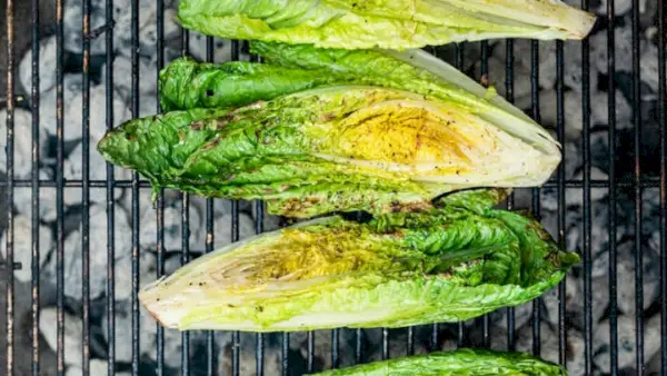 A alface grelhada é fácil de fazer e adiciona um sabor deliciosamente defumado a qualquer salada. Cubra com parmesão para um aperitivo ou acompanhamento simples!