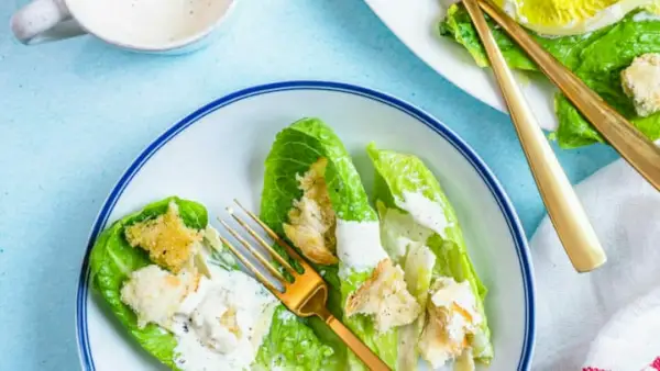 Não há receita de alface romana mais famosa do que a clássica salada César! Este stunner tem o equilíbrio perfeito de cremoso molho caseiro , croutons crocantes e alface crocante.