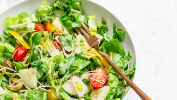 A alface romana é ideal para uma salada picada e esta vai surpreender todos à mesa! Molho italiano caseiro, vegetais crocantes e queijo parmesão combinam-se em uma salada extraordinária.