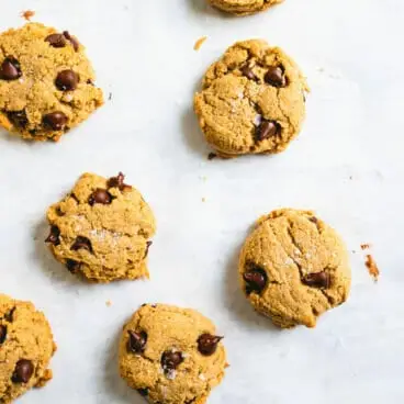 Esses biscoitos de óleo de coco são uma receita de uma tigela que resulta em um biscoito sem glúten coberto com sal marinho em flocos. Vá para Cookies de óleo de coco para mais informações.