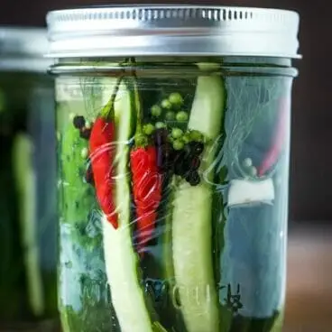 Se você preferir que seus picles de endro caseiros tenham um toque leve, você também pode fatiar algumas pimentas pequenas e adicioná-las à mistura. Mas eles não são obrigatórios! Depois de apenas alguns minutos de preparação e imersão de 24 horas, surge um sabor deliciosamente fresco e complexo. Além do sabor, os pepinos ficam crocantes e mantêm uma crocância adorável.