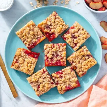 Essas barras de ruibarbo são a sobremesa perfeita para churrascos, festas e muito mais! Você pode até transformá-los em uma sobremesa servida com um garfo e cobrir com sorvete de baunilha . No entanto, lembre-se de que a crosta é espessa, por isso são mais adequadas para cravar os dentes em barras.