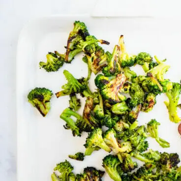 Você notará que um saco de 1 quilo de brócolis parece menos florzinhas do que você imagina! A quantidade fica ainda um pouco menor quando torrada. Se você estiver alimentando pessoas com muita fome, sugerimos fazer um lote duplo. Alex e eu polimos esta panela de brócolis congelado torrado muito rapidamente.