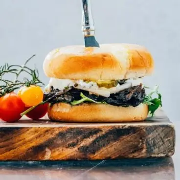 Aqui está uma opção perfeita para os amantes de cogumelos ou para quem procura um sanduíche vegetariano de carne. Experimente isso Sanduíche Portobello ! É modelado a partir de um sanduíche de bife, mas em vez disso o recheio é suculentos cogumelos portobello assados, temperados com alho, molho de soja e páprica defumada. Adicione a isso picles e cebolas crocantes, e o chute: um molho de raiz-forte que sufoca tudo com um sabor cremoso e picante. Você se tornará um crente após sua primeira mordida!