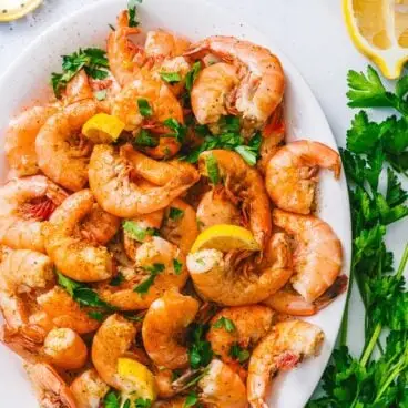 Cozinhar o camarão com a casca deixa o camarão perfeitamente úmido. Faz com que esta receita pareça uma fervura de camarão, onde você retira as cascas antes de comer. Porém, se preferir cozinhar com camarão sem casca, também funciona. Aqui está o que você deve saber: