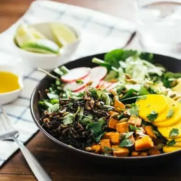 Esta Salada de Superalimento está repleta de superalimentos deliciosos: verduras, beterraba, batata doce, abacate e arroz selvagem. É uma reinicialização saudável perfeita!