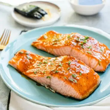 Bem, são os dois! Nós temos um receita de salmão assado isso é mega delicioso. Mas se você estiver fazendo salmão teriyaki, pintá-lo com molho teriyaki e jogá-lo no forno resulta em salmão encharcado. (Sim, nós tentamos!)