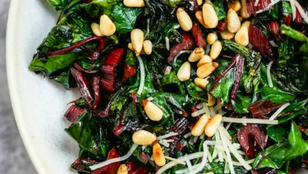 Deixe a acelga com um sabor incrível salteando-a! Realce os sabores adicionando pinhões e parmesão.