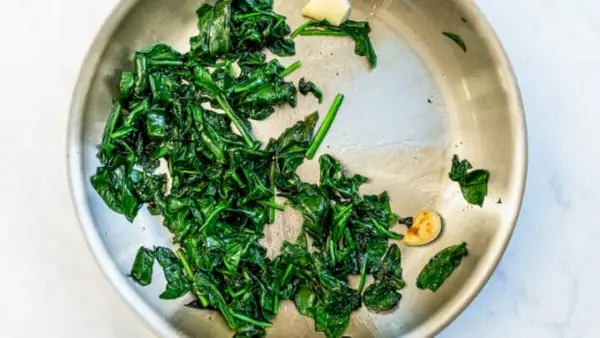 Este espinafre refogado, fresco e vibrante, é absolutamente delicioso: tem um sabor irresistível e com alho.