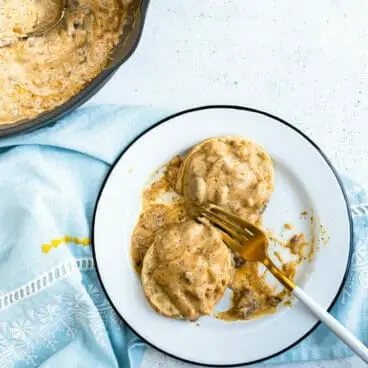 Sim, estes são os melhores biscoitos e molho veganos! Um molho espesso e apimentado de cogumelos cobre biscoitos incrivelmente escamosos. Tudo o que podemos dizer é: uau.