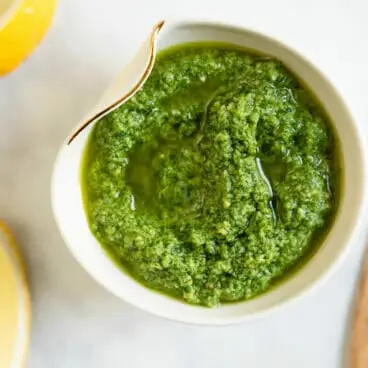 Quer pesto, mas come à base de plantas? Este pesto de caju vegano tem todas as vantagens de um pesto de manjericão clássico… sem queijo.