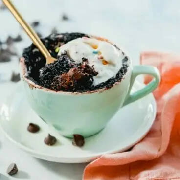 O bolo de caneca é uma invenção brilhante para uma sobremesa caseira. É um bolo de porção única feito em uma caneca no micro-ondas! Esta receita em particular é tão rica e decadente que na verdade são duas porções em uma. A parte divertida de um bolo de caneca é que ele usa ingredientes que você provavelmente já tem na despensa. Você precisará de: