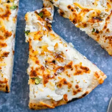 Mais algumas receitas de pizza branca? Experimente o nosso Pizza de Ricota ou Pizza de espinafre . Ou faça uma pizza branca como Pizza fácil de ferro fundido !